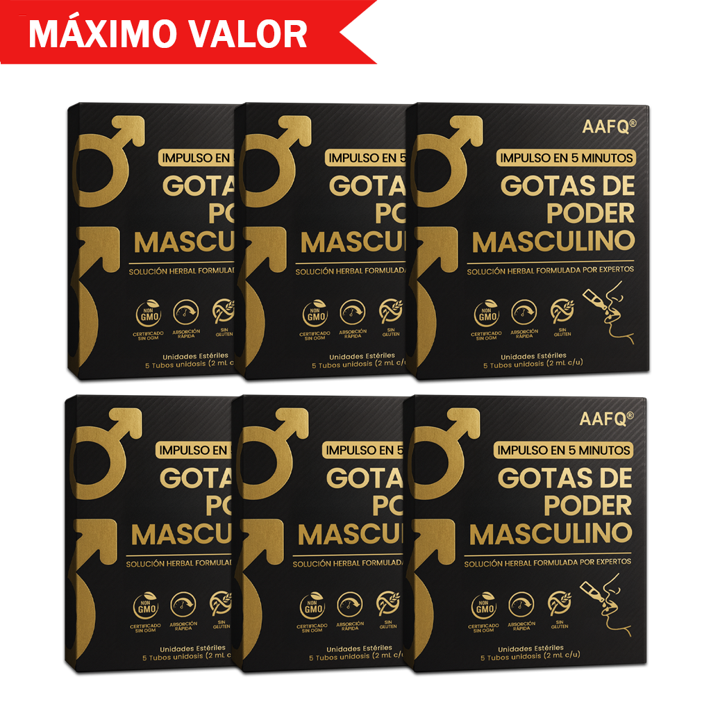 Conoce las nuevas y mejoradas Gotas AAFQ® Male Power. Hemos potenciado nuestra fórmula ancestral con la 'súper-hierba' Tongkat Ali, clínicamente es-tudiada, y la hemos empacado en revolucionarios sobres monodosis. Abre. Bebe. Transfórmate. Sin medir. Sin desorden. Sin adivinar. Solo puro poder masculino respaldado por la ciencia en tu bolsillo.